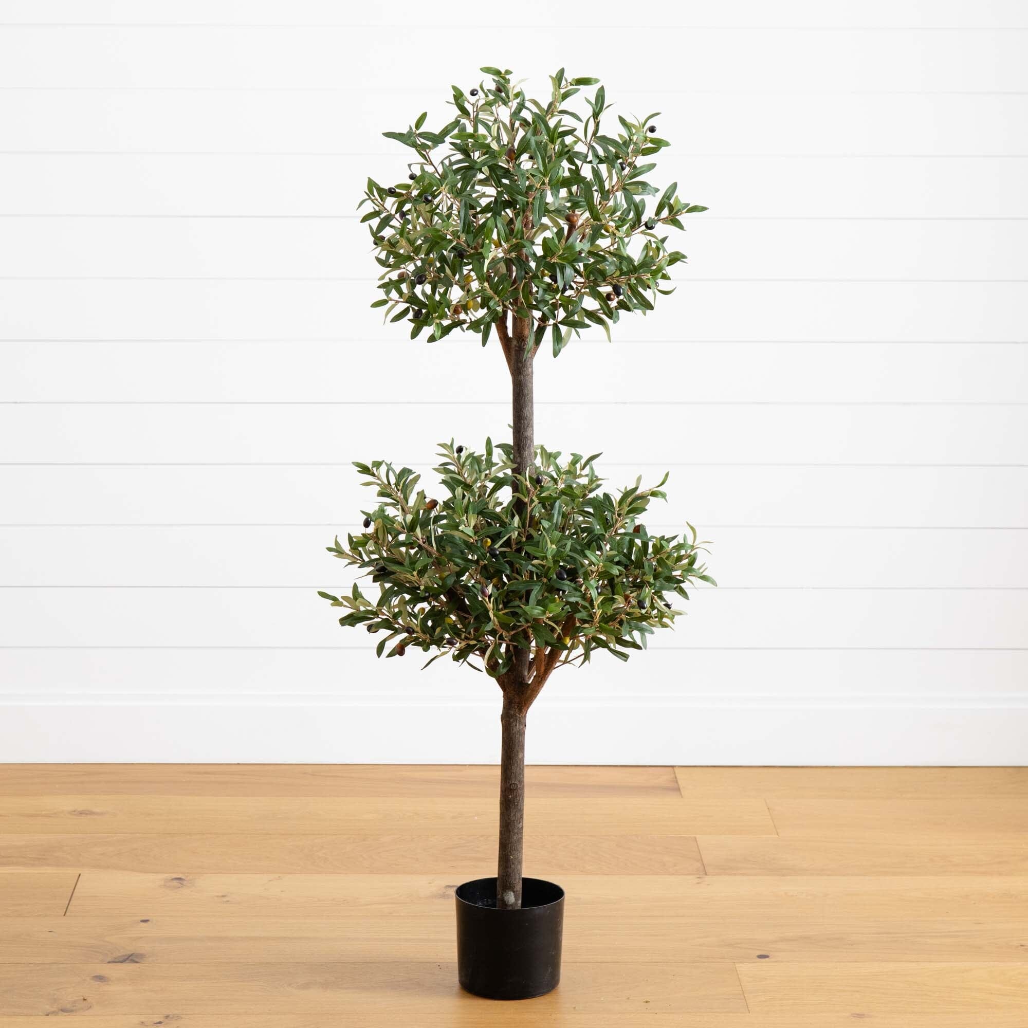Delicate. yet sturdy; whimsical yet stately; this Olive Topiary fits snugly into any décor. and announces nature's majesty. all year round. The 1794 leaves are divided into two faux growth points from the stately trunk. and splay about in all directions. giving a casual appearance that perfectly contrasts the neatness of the two groups. Makes an ideal doorway accent or conversation piece.