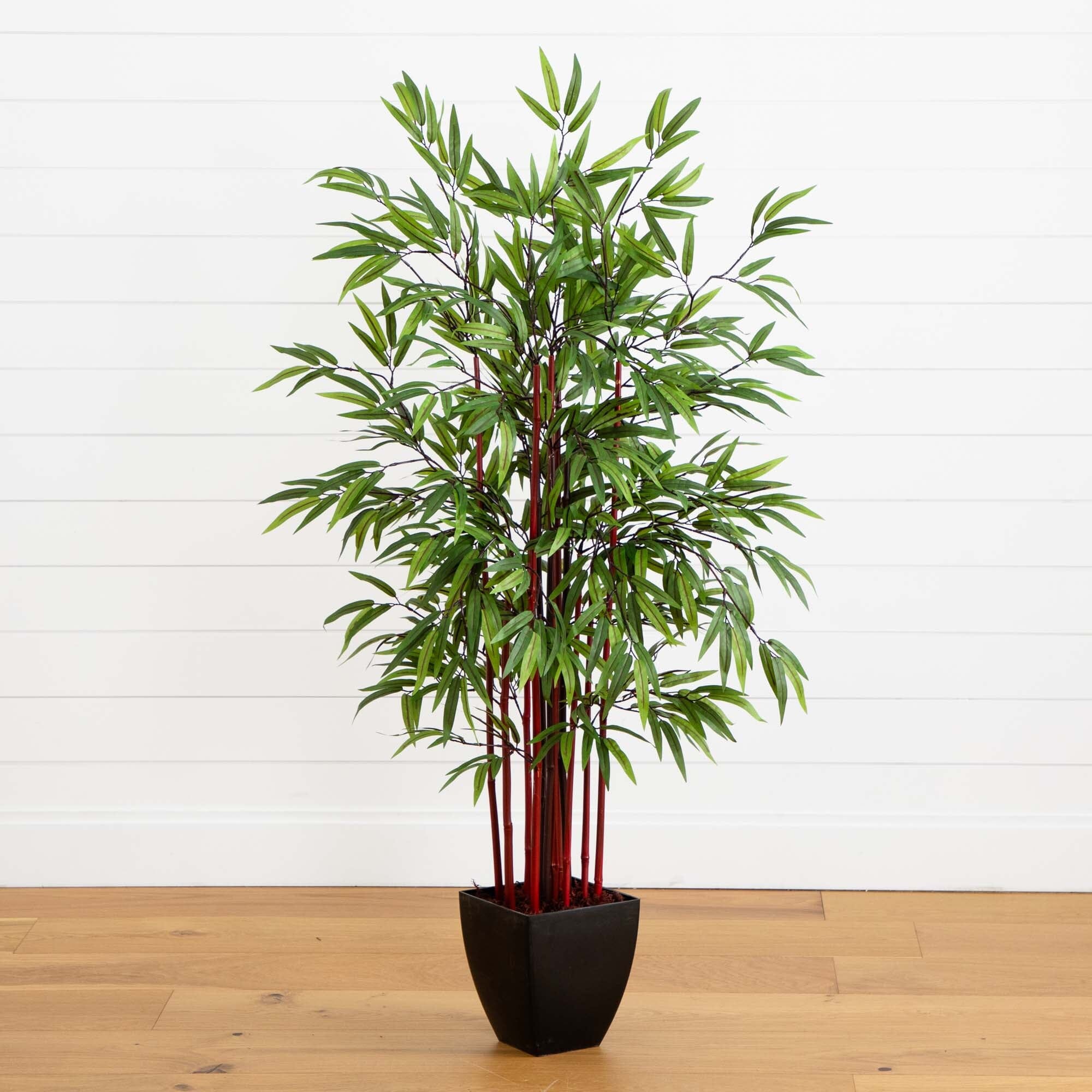 Get a little taste of the Orient with this lovely bamboo tree. Standing at a stout 5 feet tall. this collection of bamboo shoots and leaves will give one a feeling of whimsy and reflection (perfect for enjoying a cup of tea!)This piece comes with a decorative planter that is simple. yet elegant. much like the bamboo itself. It's a great piece for either home or work. and also makes a unique gift.