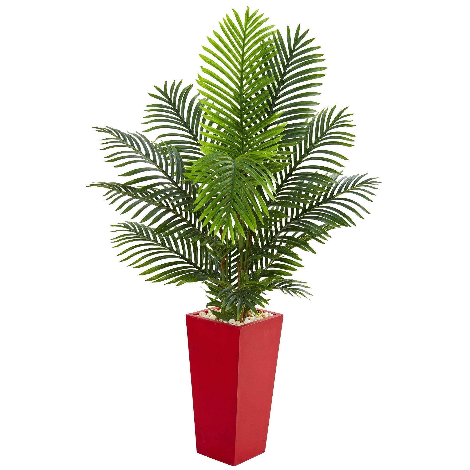 Decorate your home or office with this artificial paradise palm tree! Soft to the touch. this 5-foot tree appears quite lifelike with its slightly light and dark green leaves that spread out without a care in the world. It comes in a bold red planter that will equally bring a romantic vibe to your room and stimulate conversation. Set it in your formal dining room or living room next to a decorative lamp for a lovely finish.