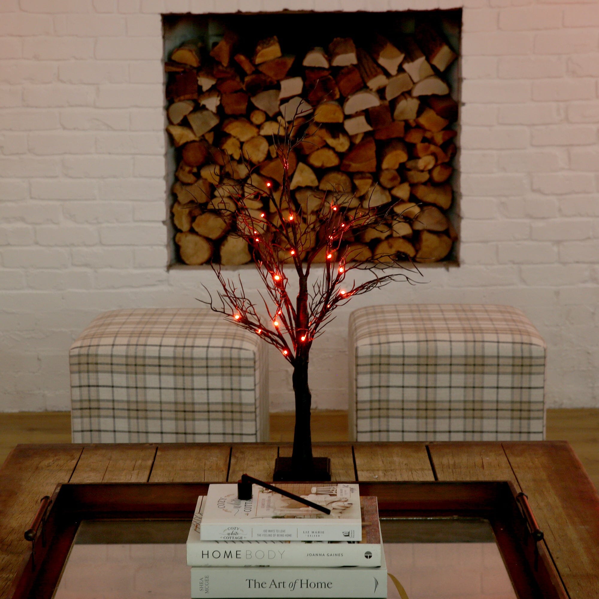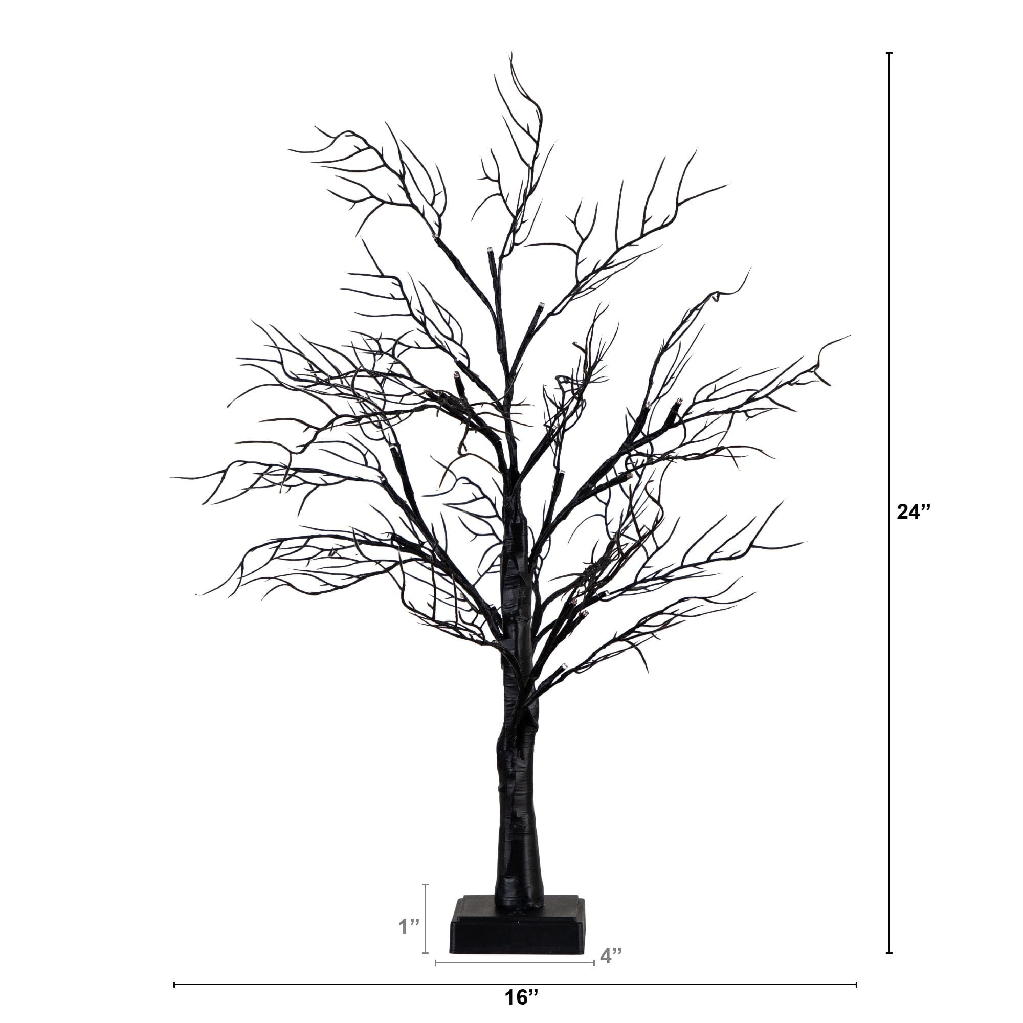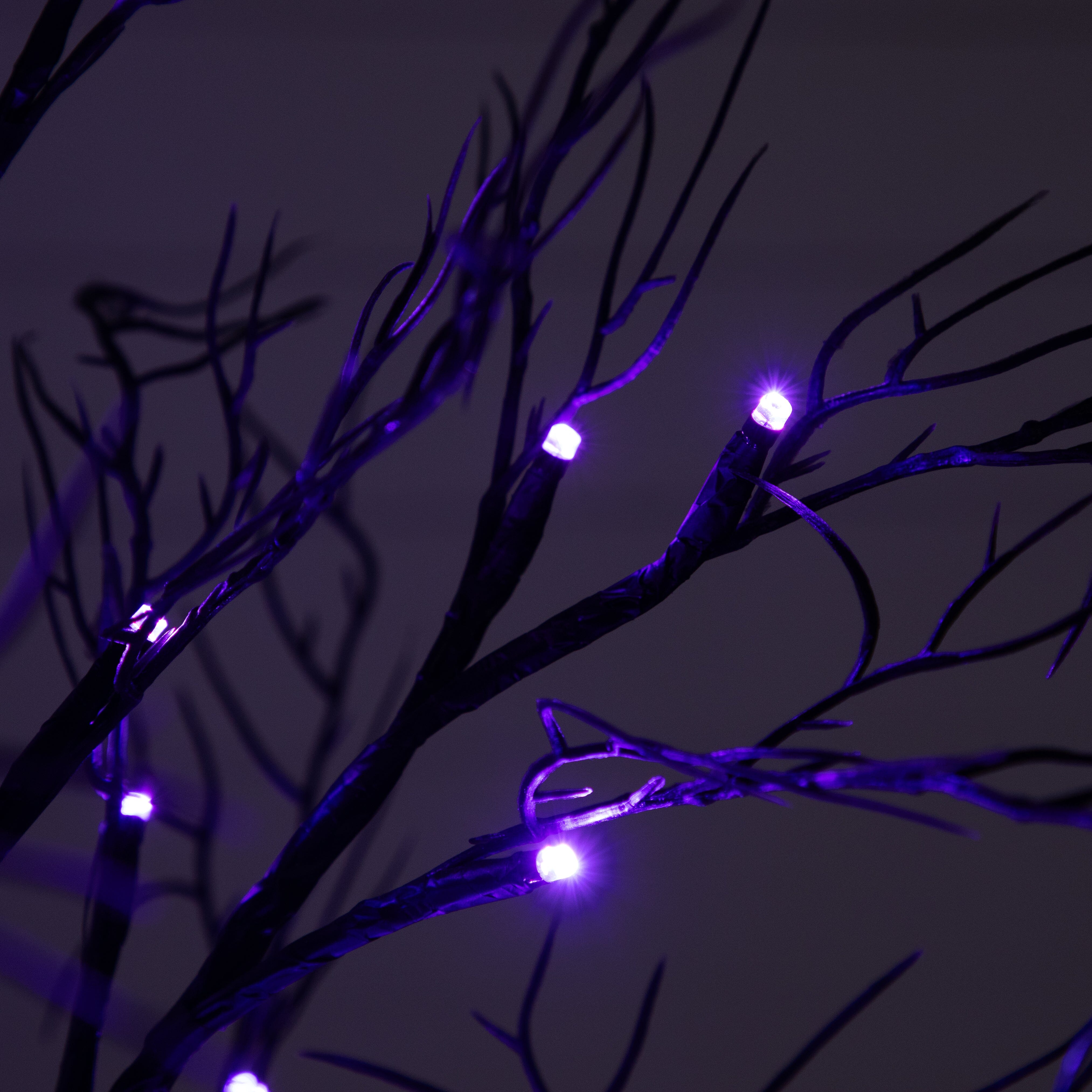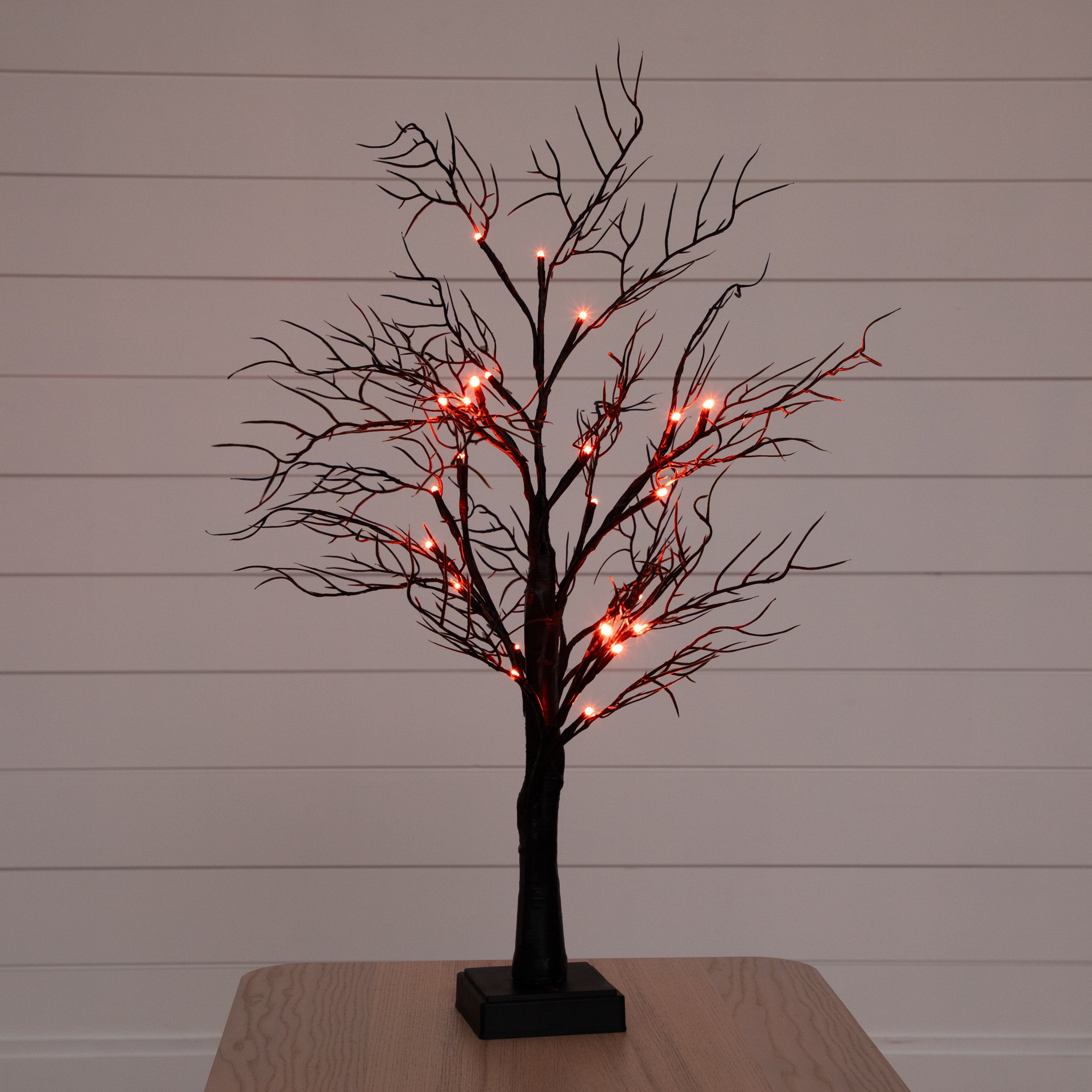 Meet your new scary BFF for Halloween. Say hello to the new twig tree. Inspired by the autumn forest of the Smoky Mountains. you'll be captivated by the natural details throughout. Crafted from high-quality materials. you can bend the branches for a custom look. But the true game-changer is the 44 energy-efficient LED lights. turning on with just the click of a button. Scroll through two light colors: purple and orange for a festive touch. perfect for setting a spooky yet cozy ambiance. Standing 24" tall on a sturdy black base. you can DIY and add your favorite decorations. Great for any desktop that needs a seasonal touch. we love it in offices. events and homes.