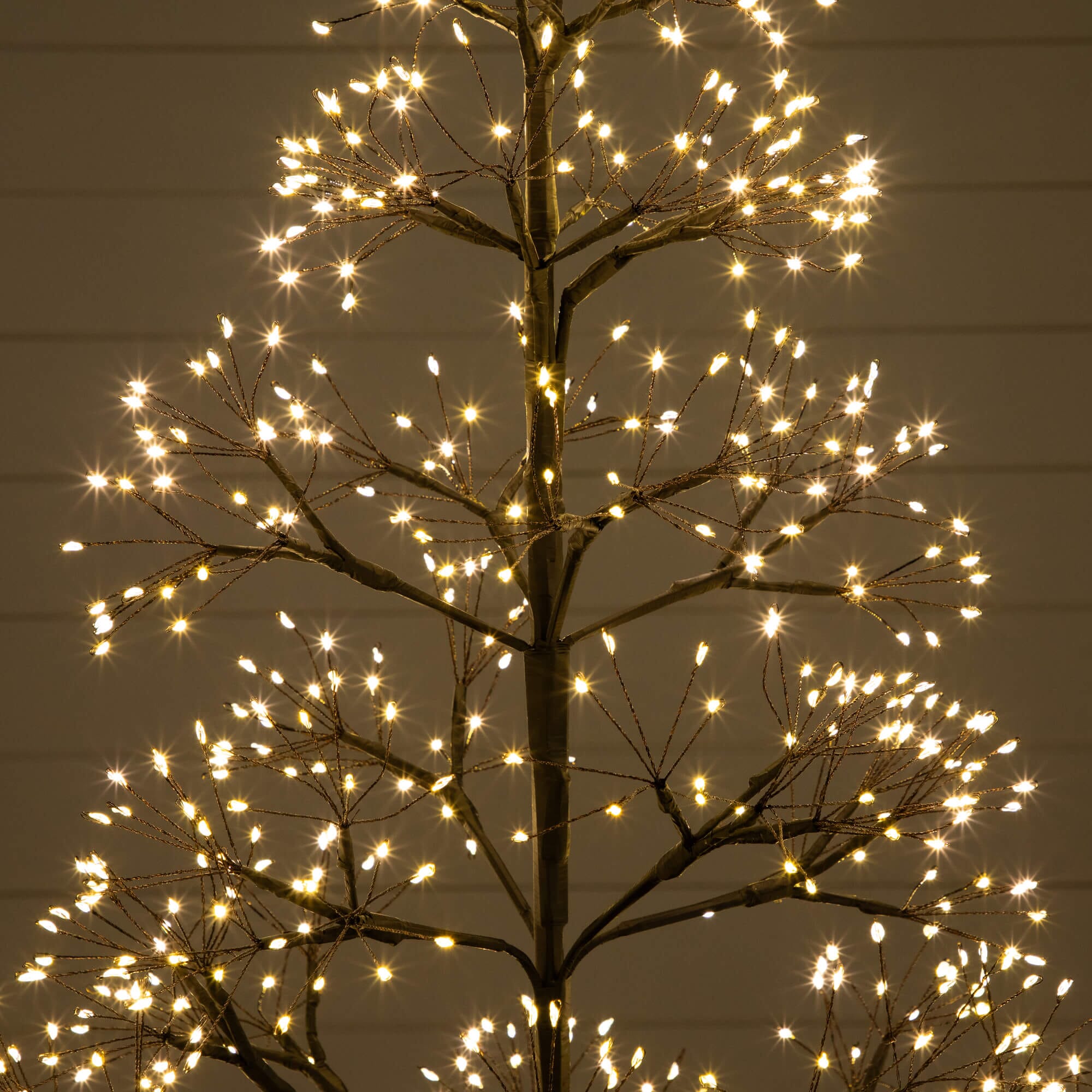 Illuminate your space with a mesmerizing glow of our pre-lit artificial Halloween black starburst tree. Designed for a striking and eerie ambiance. this tree features 800 warm white fairy LED lights woven through delicate copper wire. casting a captivating radiance. Its starburst-inspired silhouette adds a unique and modern touch. perfect for enhancing your seasonal décor. Equipped with 8 lighting functions. customize the glow to match your desired mood. Standing 4-Ft tall. this dazzling display makes an eye-catching statement anywhere placed and can transition from Halloween to Christmas seamlessly. Let this enchanting tree be the highlight of your Halloween celebrations.
