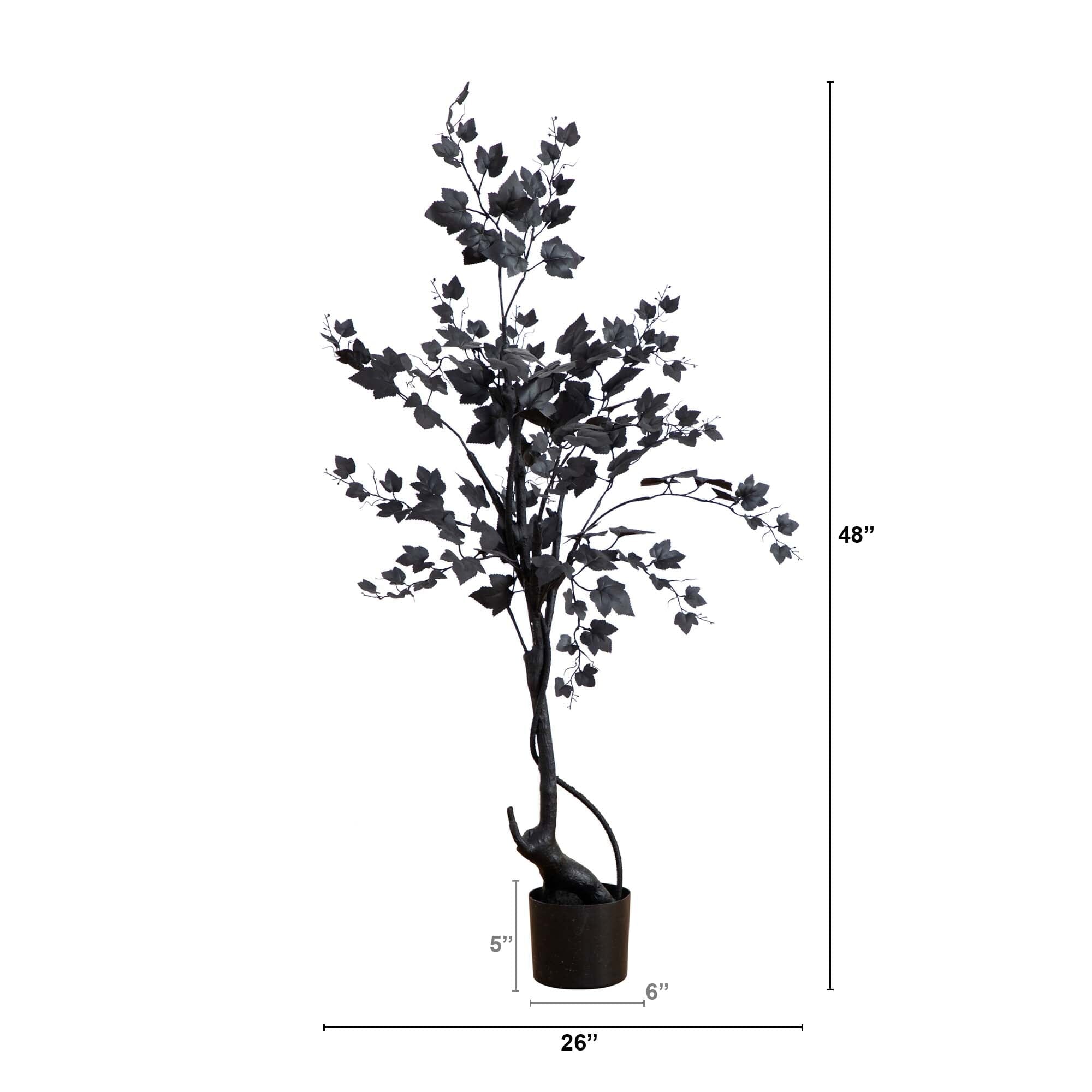 Ever wanted to create your dream Halloween setup? Well. now you can with the artificial Halloween maple tree. Inspired by the crisp fall season. this piece is a fun take on the classic. beloved maple. Crafted from high-quality materials. bend the branches to fit in your space. Standing 4' from a nursery planter. DIY and display in a base of your choice. Transform your home into a seasonal oasis. it's great for those Halloween parties. Easy to store for year after year use. without maintenance.