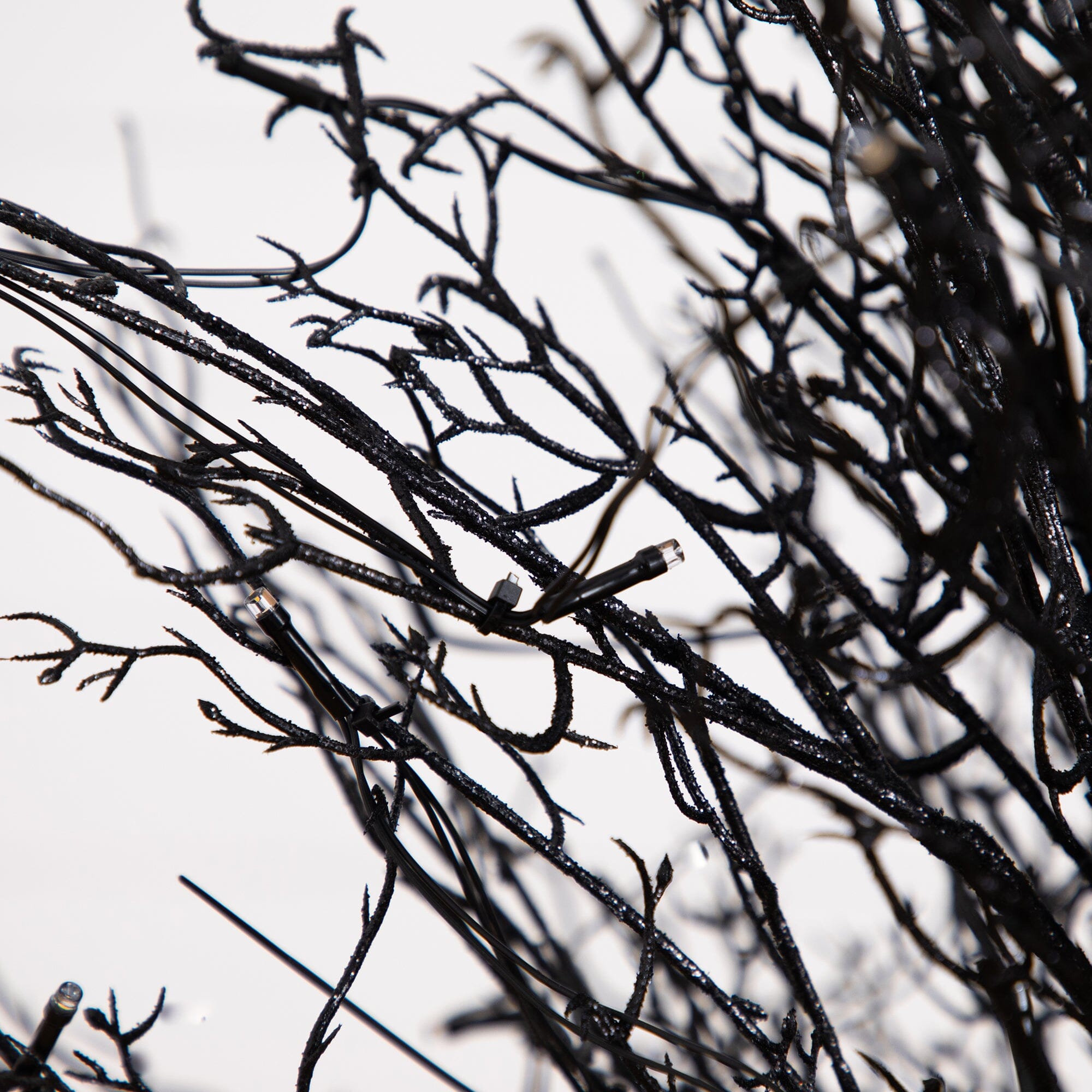 Halloween doesn't have to be scary. Make it stylish with the Halloween black twig tree. Inspired by nature. feel like you're walking along Salem's picturesque autumn season on a crisp day. Crafted with attention to detail. the tree has naturally occurring details throughout and bendable branches you can shape for a custom look. The true show begins with the 85 energy-efficient LED lights accented throughout the silhouette. delivering a cozy feeling. Standing 5' from a trendy burlap. display in any area needing holiday cheer. For added fun. decorate with pumpkins. bats. wreaths and more.