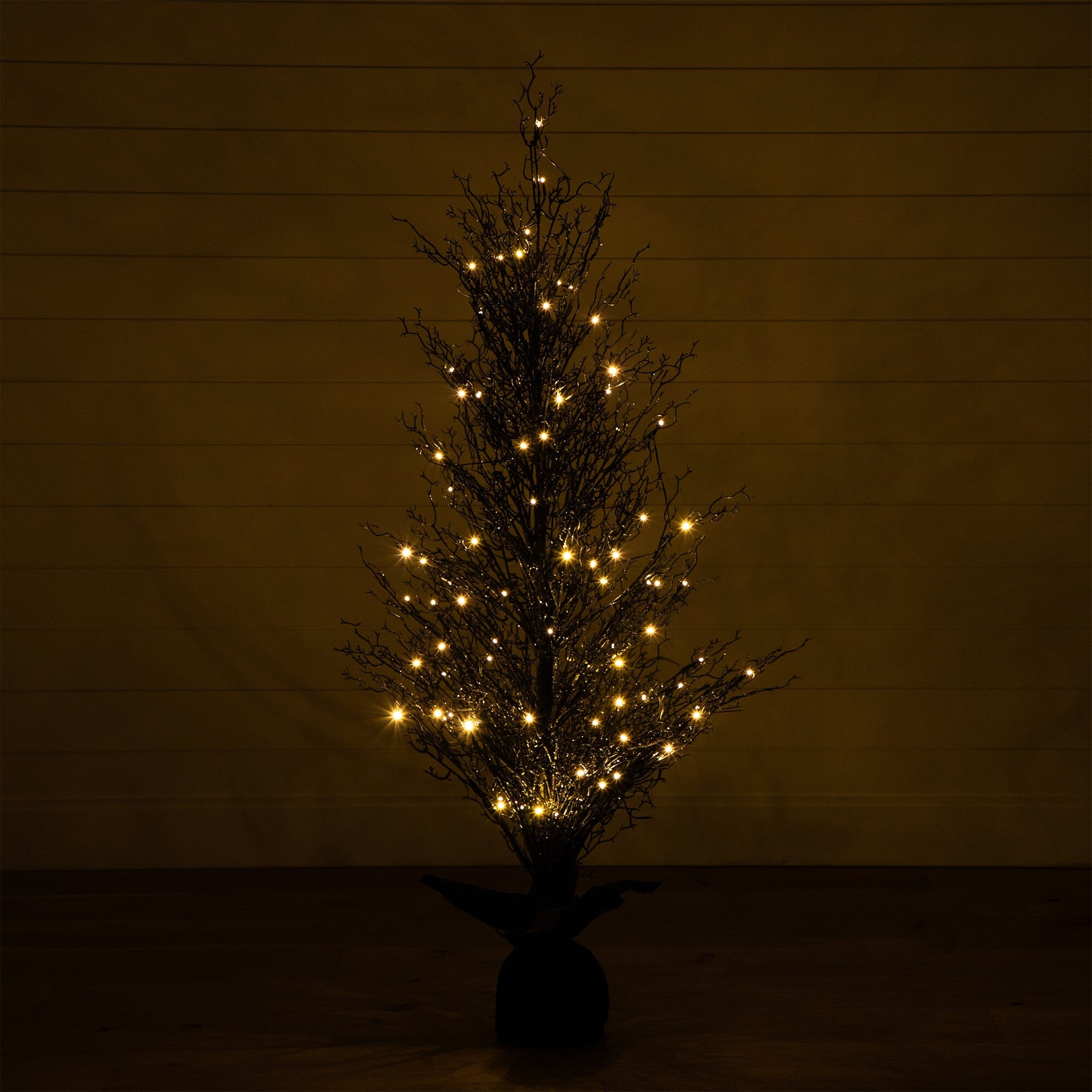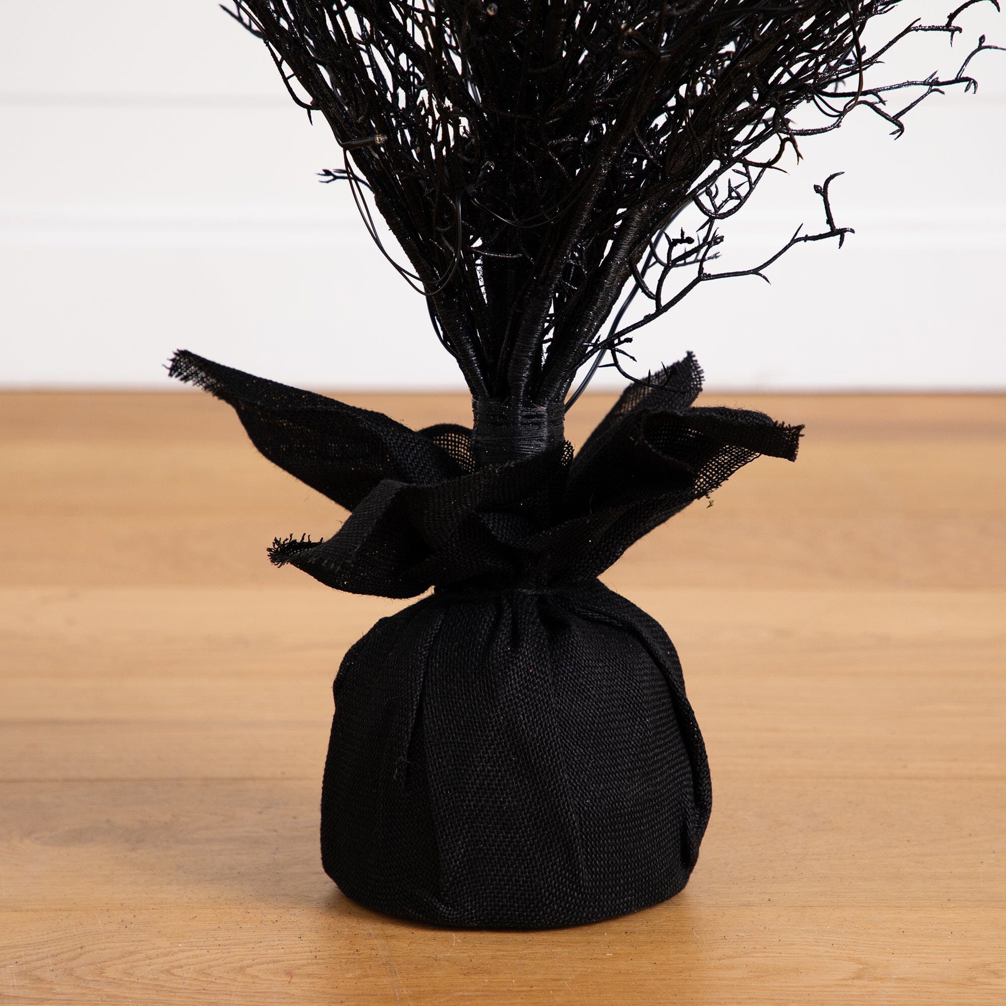 5' Pre-Lit Halloween Black Twig Artificial Fall Tree in Burlap Planter with 85 Warm White LED Lights