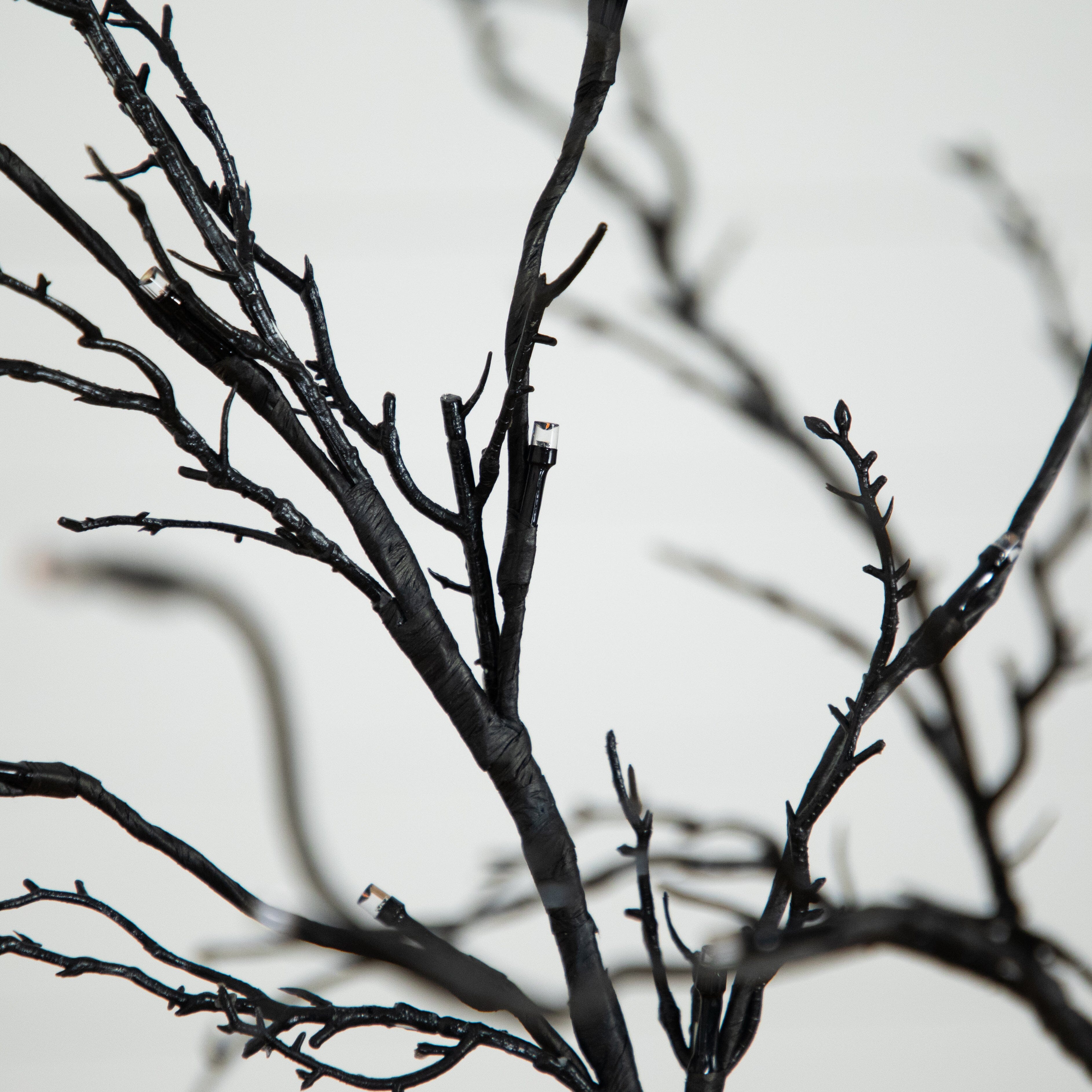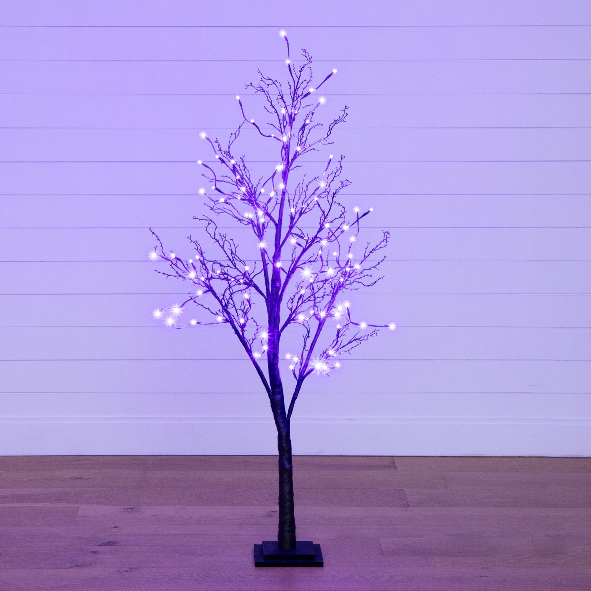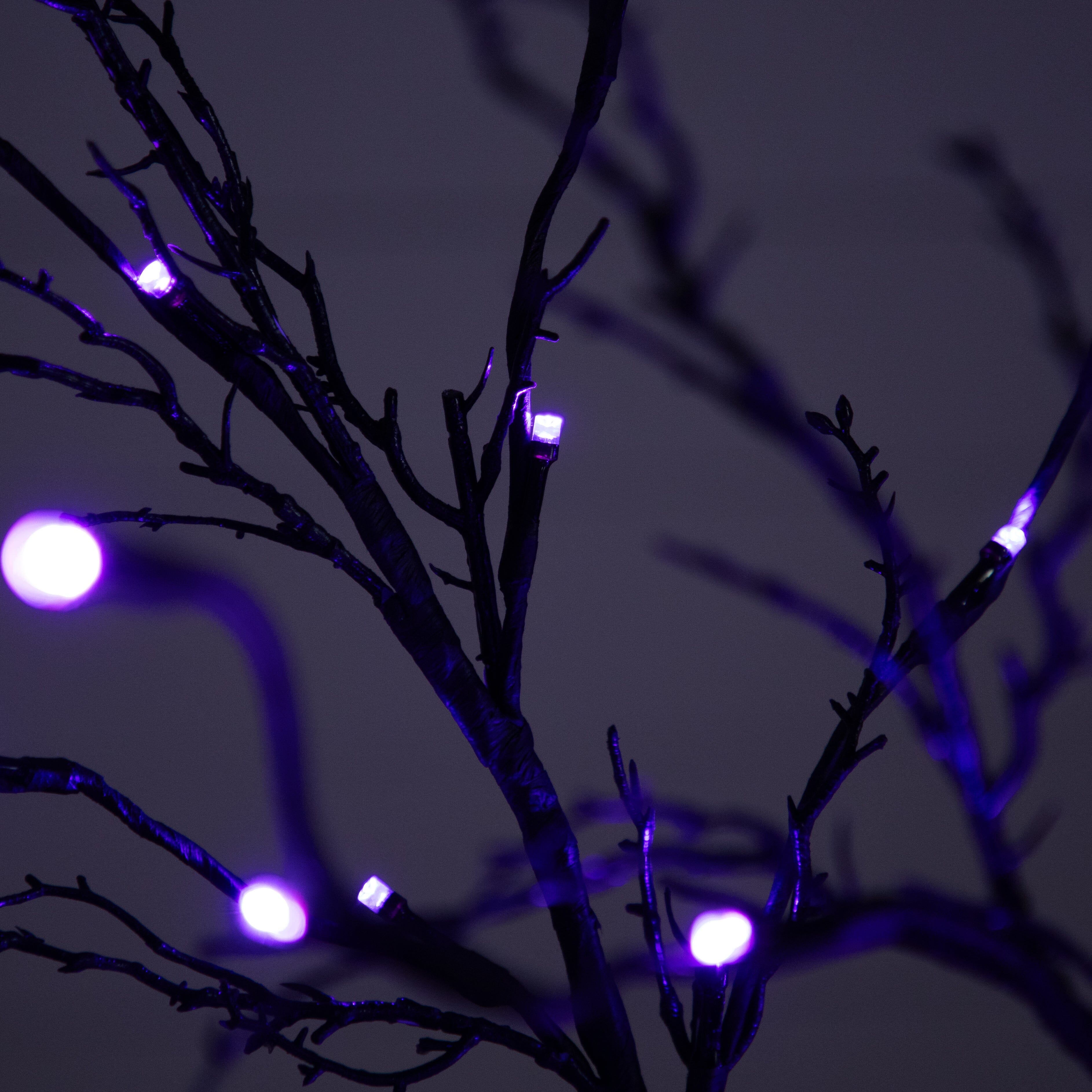 Welcome the scary season with this Halloween-inspired twig tree that'll delight any goblin. Inspired by nature. feel like you're walking along Salem's picturesque autumn season on a crisp day. Crafted from high-quality materials. feel free to shape the branches for a custom look. 102 pre-strung multicolored LED lights create a cozy show and you can alternate between purple and orange lights by pressing a button on the plug-in base. This creates a spooky feel perfect for your dream haunted house. The LED lights create a centerpiece that sets the mood for a hauntingly delightful atmosphere and the shaping is your hocus pocus time to shine. The energy-efficient lights save you both time and money on the electric bill. Standing 5' from a sturdy black base. it adds an eerie and enchanting touch to any space.