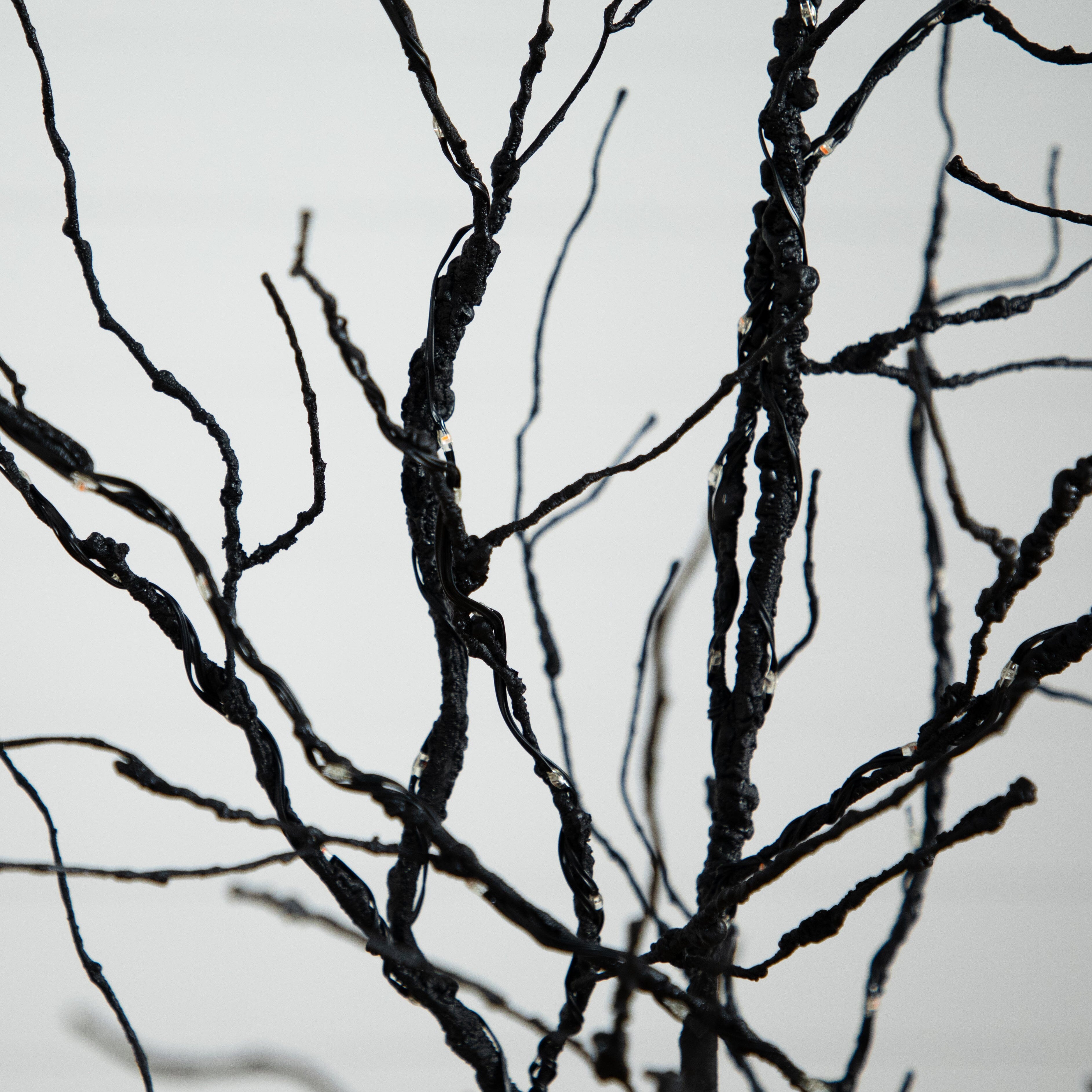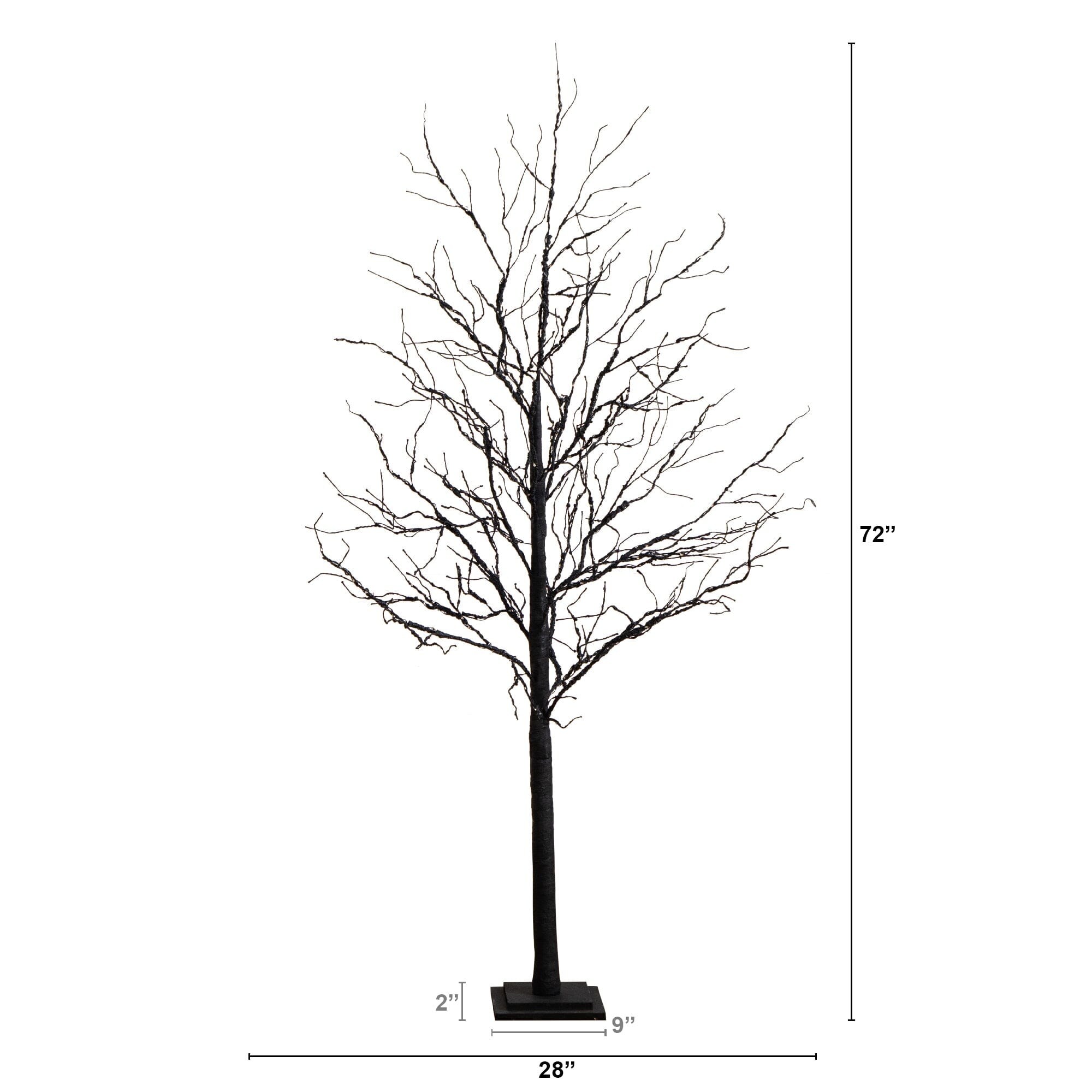 Welcome the scary season with this Halloween-inspired twig tree that'll delight any goblin. Inspired by nature. feel like you're walking along Salem's picturesque autumn season on a crisp day. Crafted from high-quality materials. feel free to shape the branches for a custom look. 156 pre-strung multicolored LED lights create a cozy show and you can alternate between purple and orange lights by pressing a button on the plug-in base. This creates a spooky feel perfect for your dream haunted house. The LED lights create a centerpiece that sets the mood for a hauntingly delightful atmosphere and the shaping is your hocus pocus time to shine. The energy-efficient lights save you both time and money on the electric bill. Standing 6' from a sturdy black base. it adds an eerie and enchanting touch to any space.