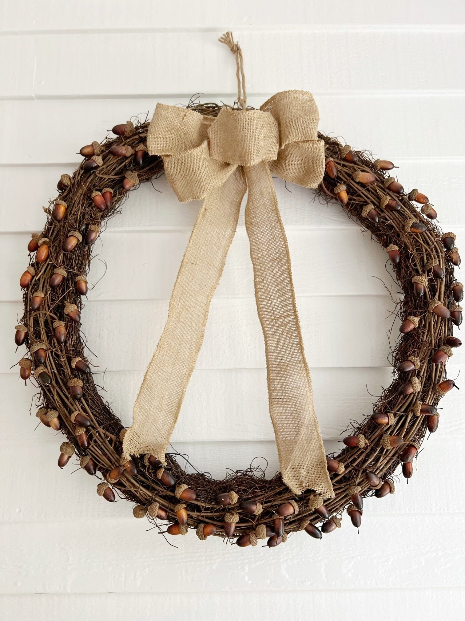 Inject rustic charm into any bare space with this Acorn wreath with decorative bow. Feminine yet homey. celebrate the best of fall while still being farmhouse chic. With a dimension of 30". house in any space that needs festive cheer."